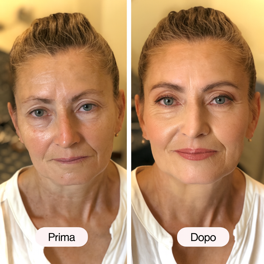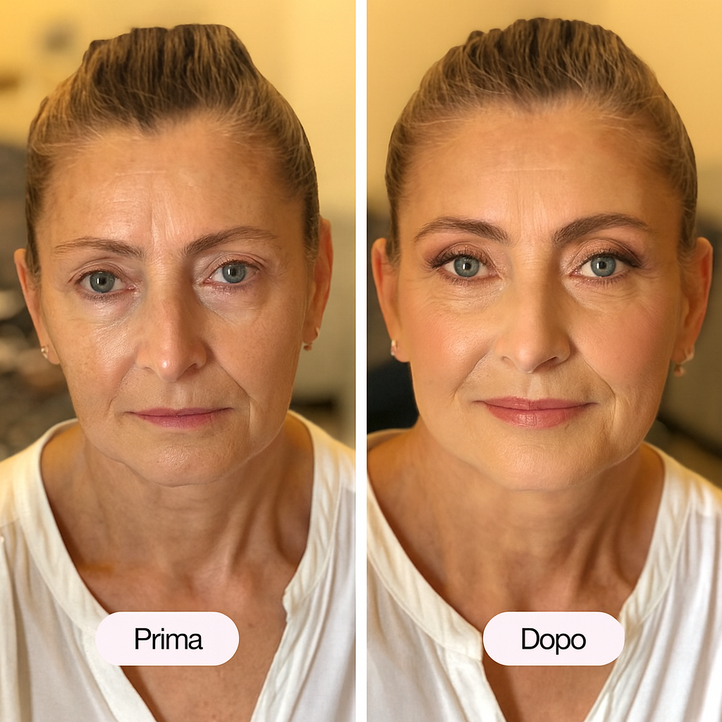 La formula levigante attenua linee sottili e pori, lasciando un risultato naturale senza effetto maschera.